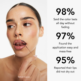 De Lip Stain blijft tot wel 12 uur zitten! En je hoeft je geen zorgen te maken dat hij afveegt. Hij is veegvast en waterproof. Je kunt er zelfs lipgloss op doen voor een glanzende finish.